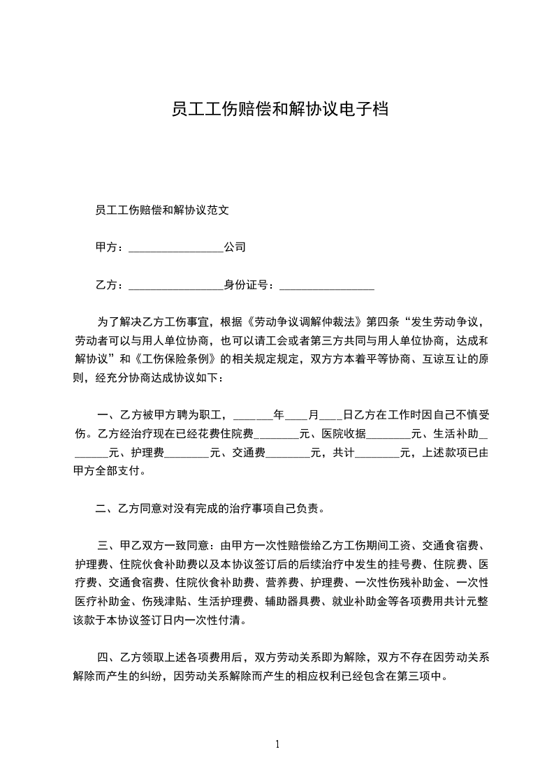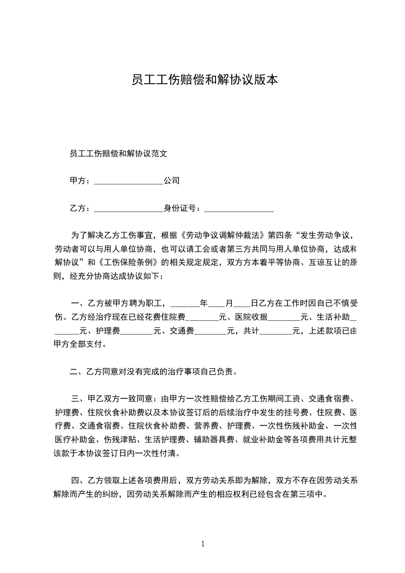 为了解决乙方工伤事宜,根据《劳动争议调解仲裁法》第四条“发生劳动争议,劳动者可以与用人单位协商,也可以请工会或者第三方共同与用人单位协商,达成和解协议”和《工伤保险条例》的相关规定规定,双方方本着平等协商、互谅互让的原则,经充分协商达成协议如下: