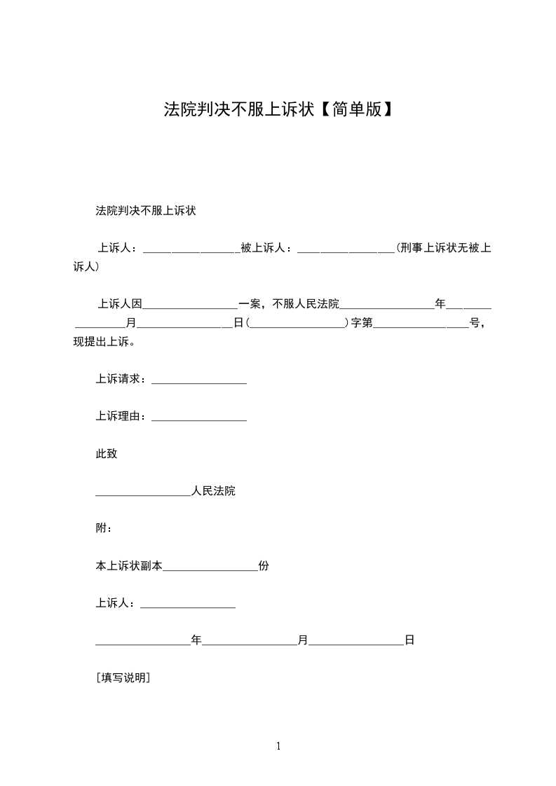 法院判决不服上诉状