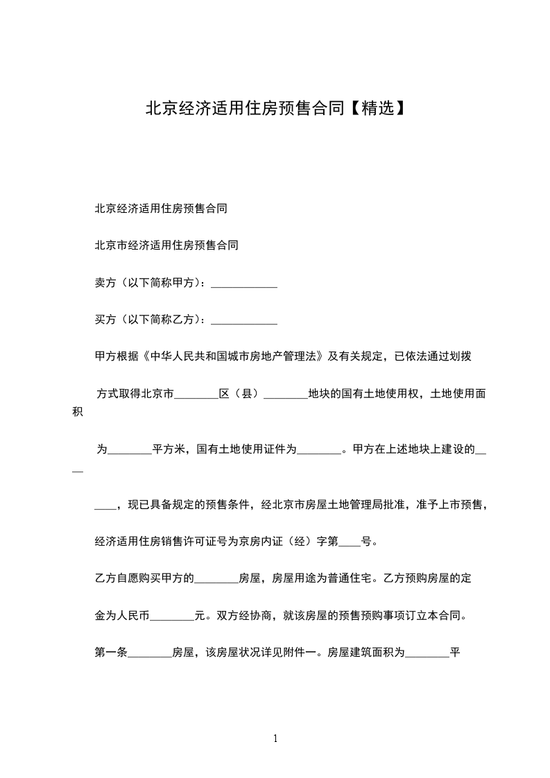 北京经济适用住房预售合同
