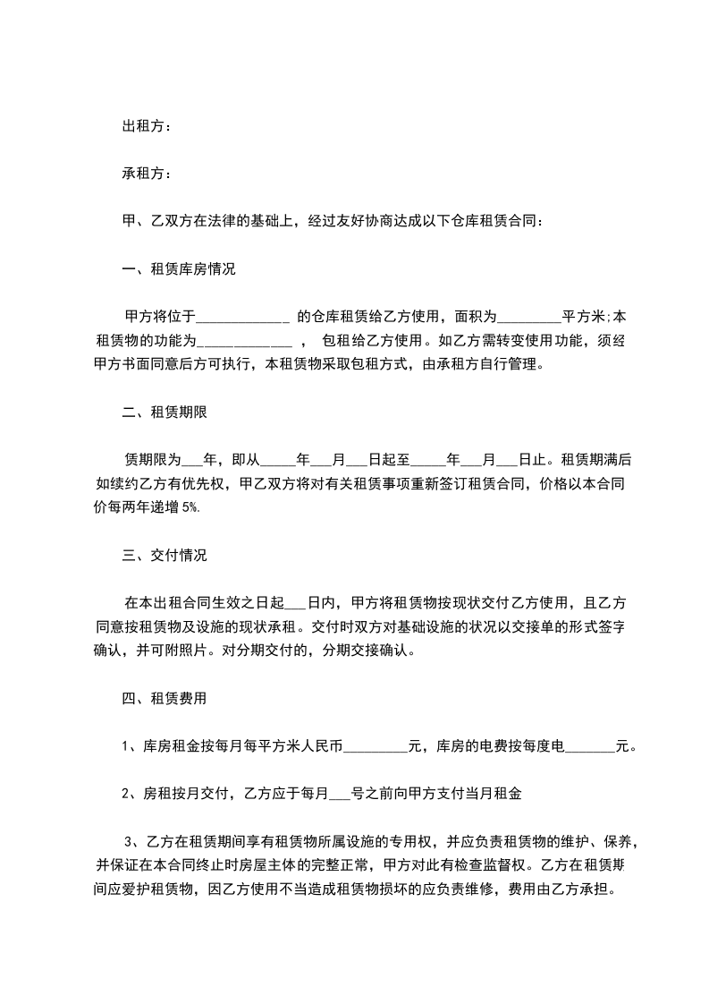 七、乙方不得在出租房内发生违法活动,未经甲方同意不得私自改变用途,否则,甲方有权随时解除合同,随时收回仓库,所导致的一切法律责任、经济损失由乙方自行承担,甲方概不负责。