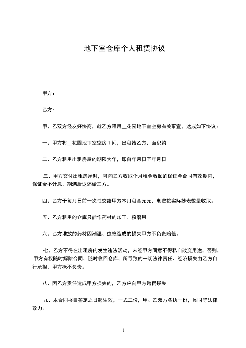 一、甲方将__________花园地下室空房_____________间,出租给乙方,面积约_____________M2.