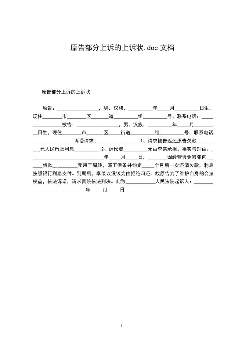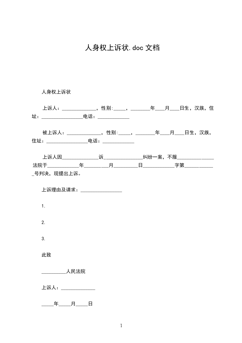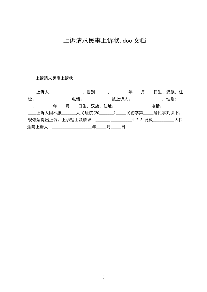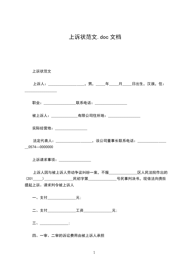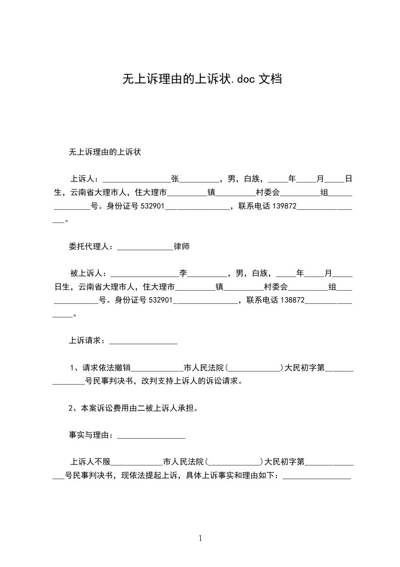 上诉人:___________________,男,_____年_____月_____日出生,汉族,住:_________________