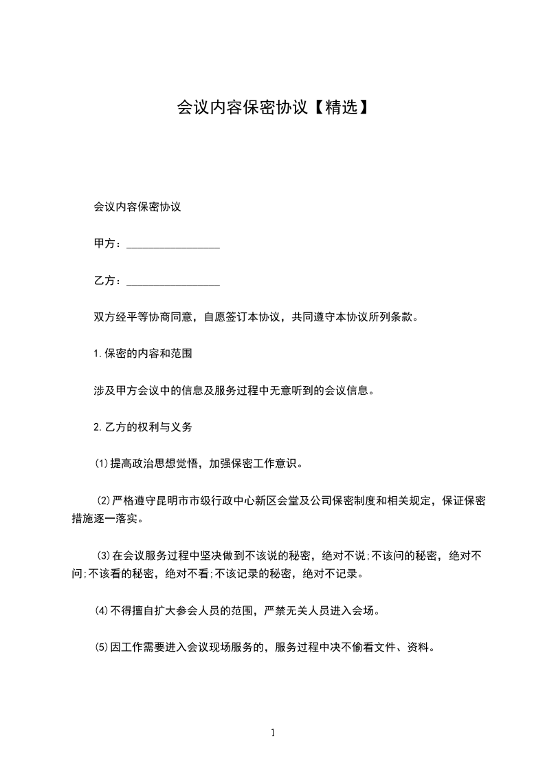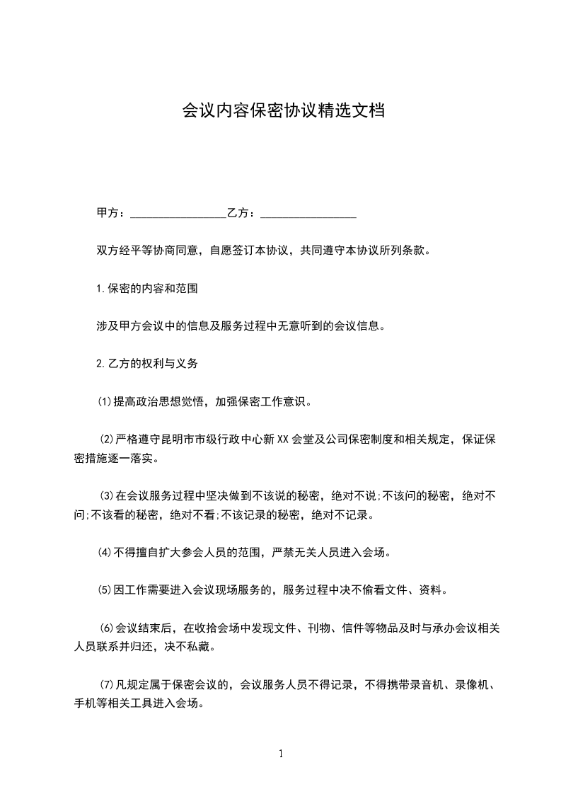 会议内容保密协议