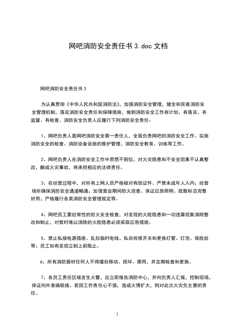 网吧消防安全责任书3