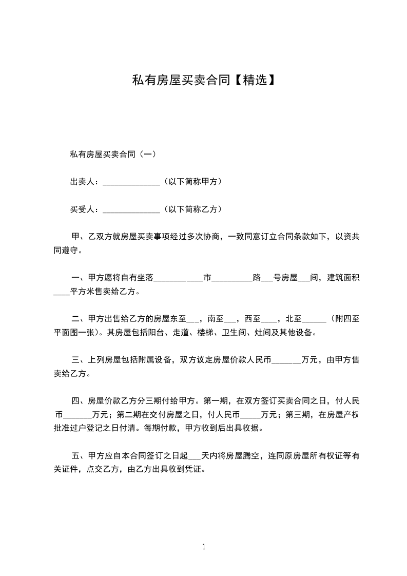 三、上列房屋包括附属设备,双方议定房屋价款人民币_______万元,由甲方售卖给乙方。