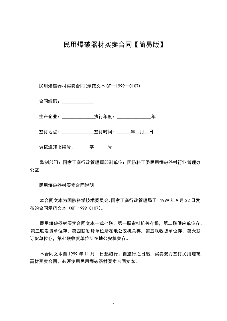 民用爆破器材买卖合同(示范文本GF--1999--0107)