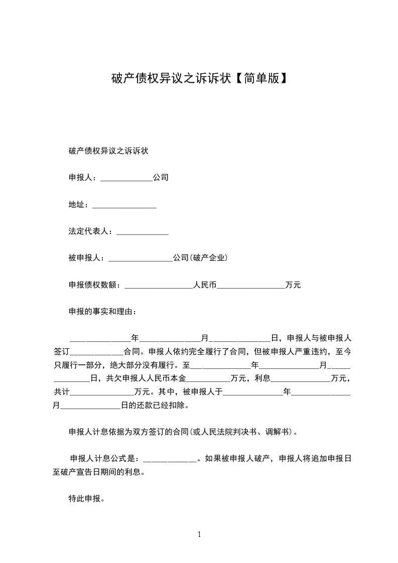 _______________年_______________月_______________日,申报人与被申报人签订_____________合同。申报人依约完全履行了合同,但被申报人严重违约,至今只履行一部分,绝大部分没有履行。至_______________年_______________月_______________日,共欠申报人人民币本金___________万元,利息_______________万元,共计________________万元。其中,被申报人于_______________年_______________月_______________日的还款已经扣除。