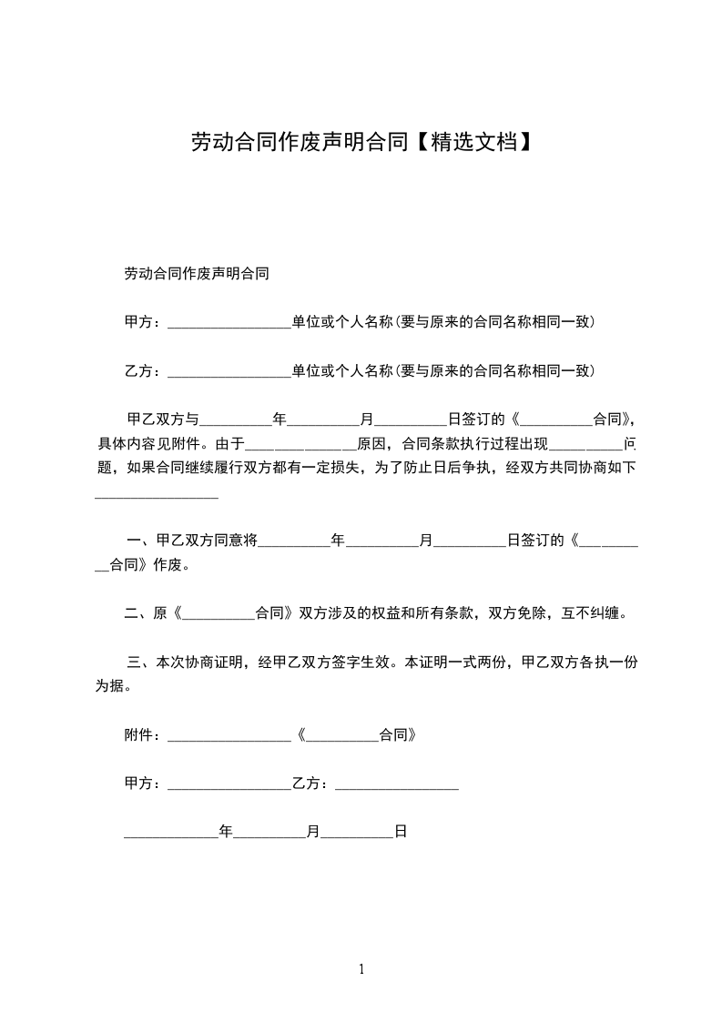 劳动合同作废声明合同