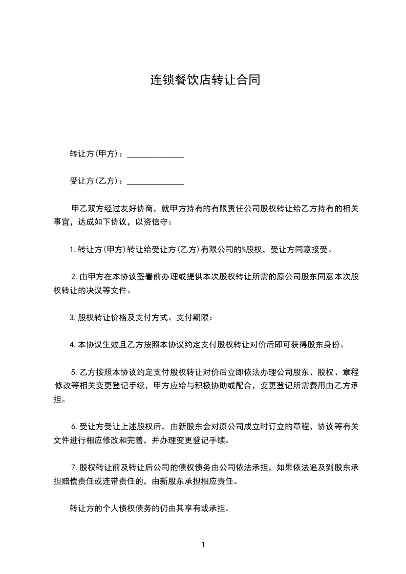 1.转让方(甲方)转让给受让方(乙方)有限公司的_____%股权,受让方同意接受。