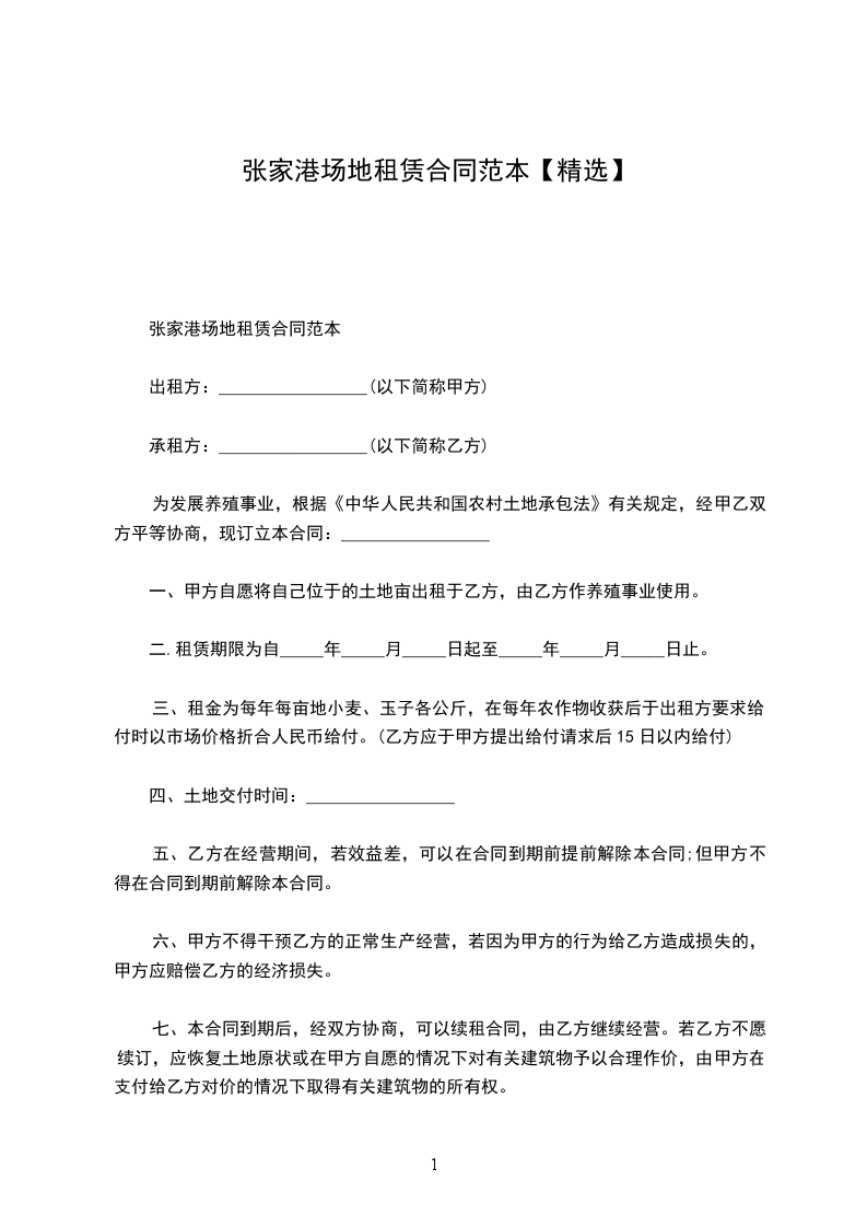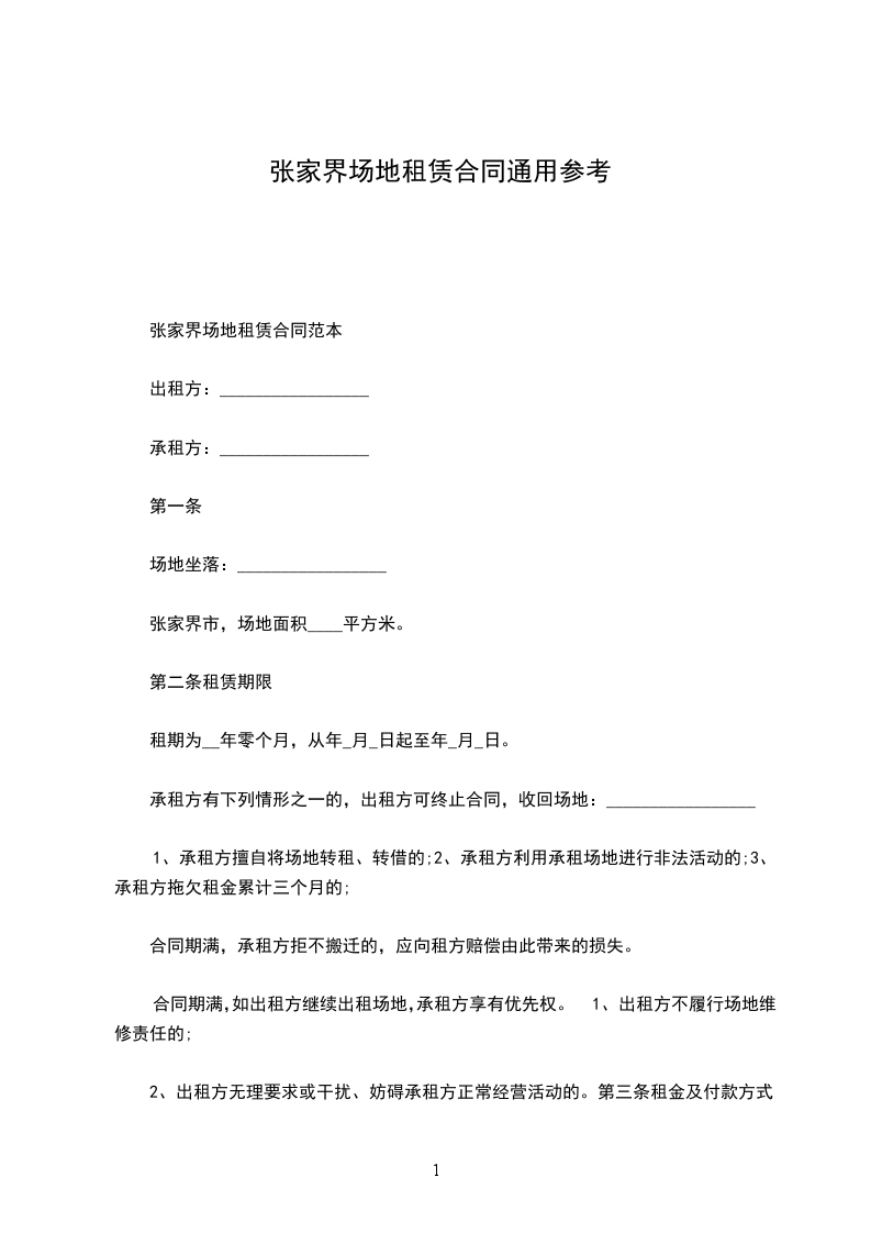 张家港场地租赁合同范本