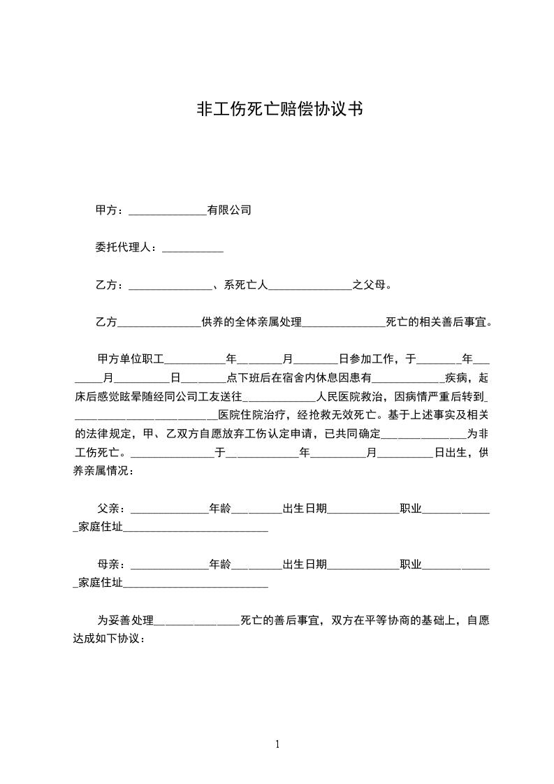 乙方:_______________、系死亡人_______________之父母。