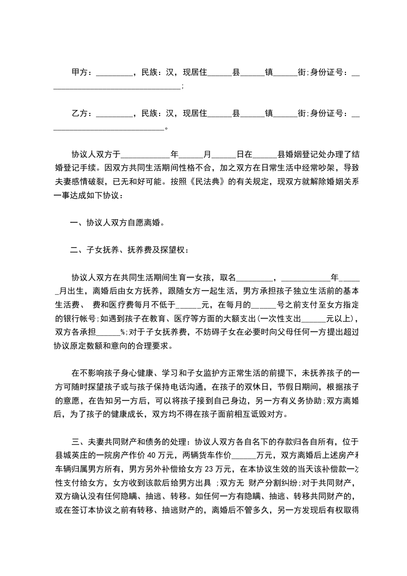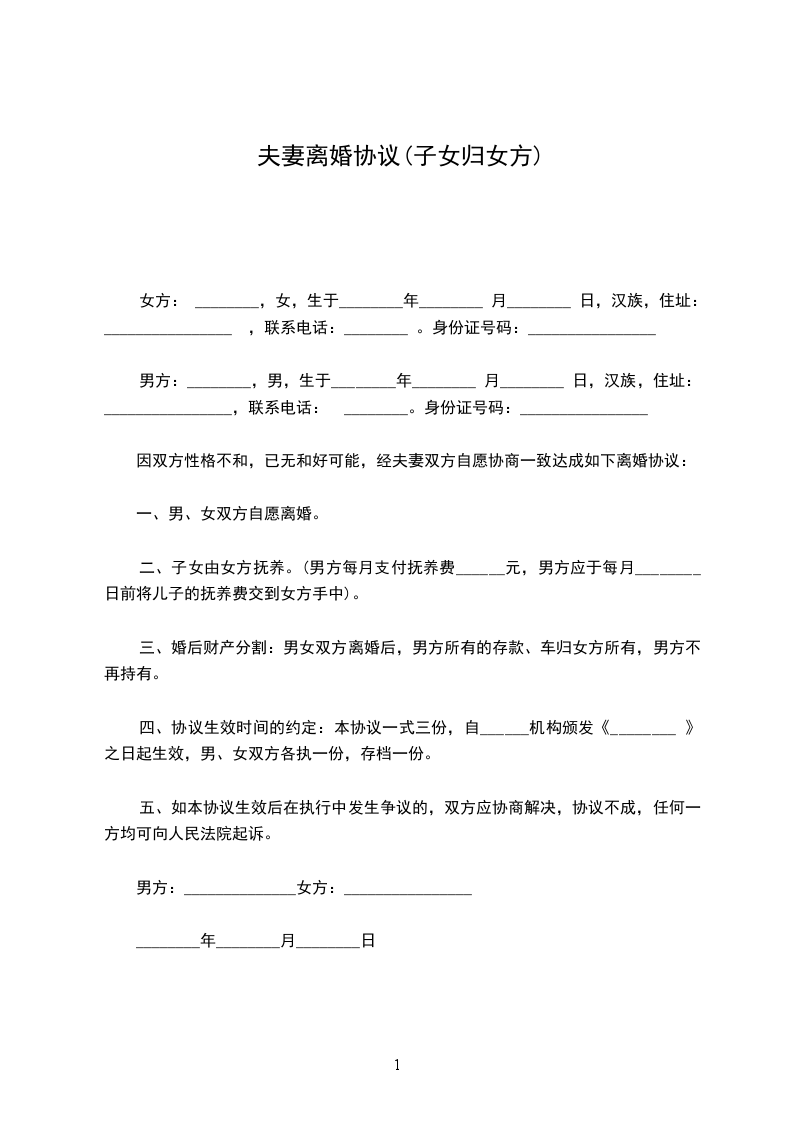 10、本协议壹式贰份,由男女双方各执壹份,具有同等法律效力。