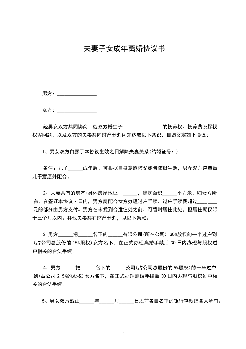 备注:儿子______成年后,可根据自身意愿随父或者随母生活,男女双方应尊重儿子意愿并配合。