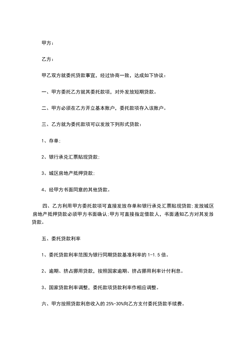 甲方为有效地运用其自有资金,委托乙方发放委托贷款,乙方同意接受甲方的委托。甲、乙遵照国家的法律规定,经协商一致,按以下条款订立本合同。