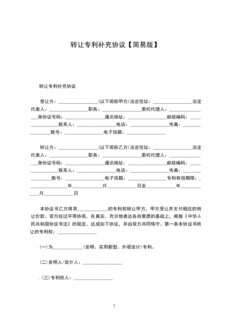 转让专利补充协议