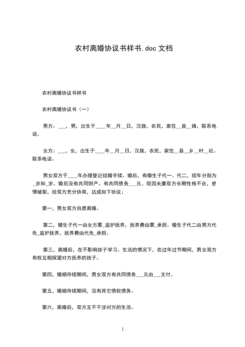 男方___与女方___于____年__月认识,于__年__月__日在____登记结婚,婚后于__年__月__日生育一儿子(女儿),名______.双方感情完全破裂,没有和好可能,现经夫妻双方自愿协商达成一致意见,订立离婚协议如下: