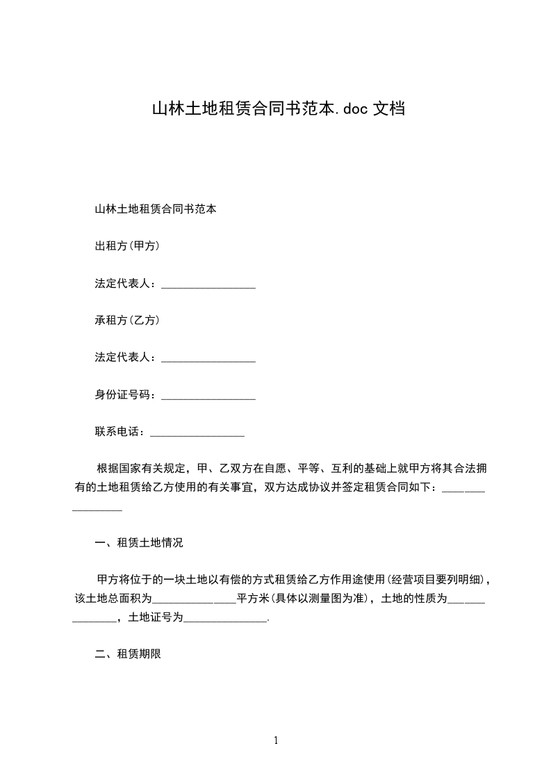 山林土地租赁合同书范本