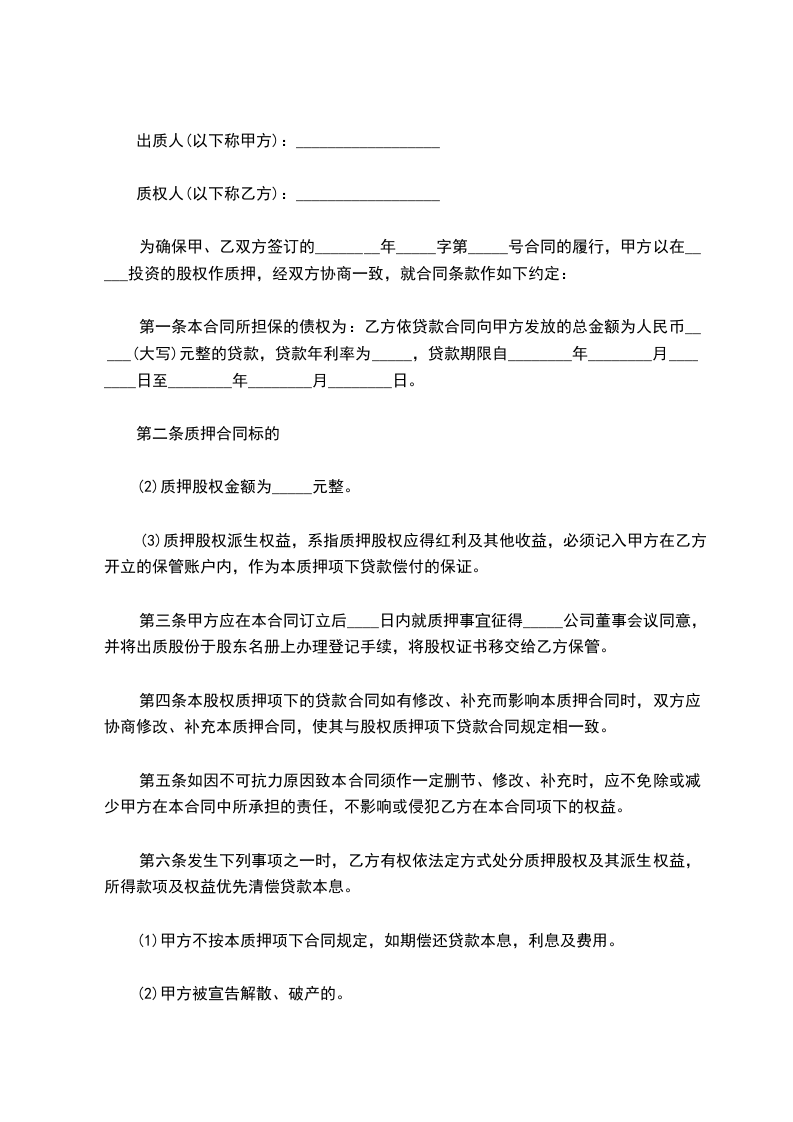 (2)质押股权金额为_____元整。
