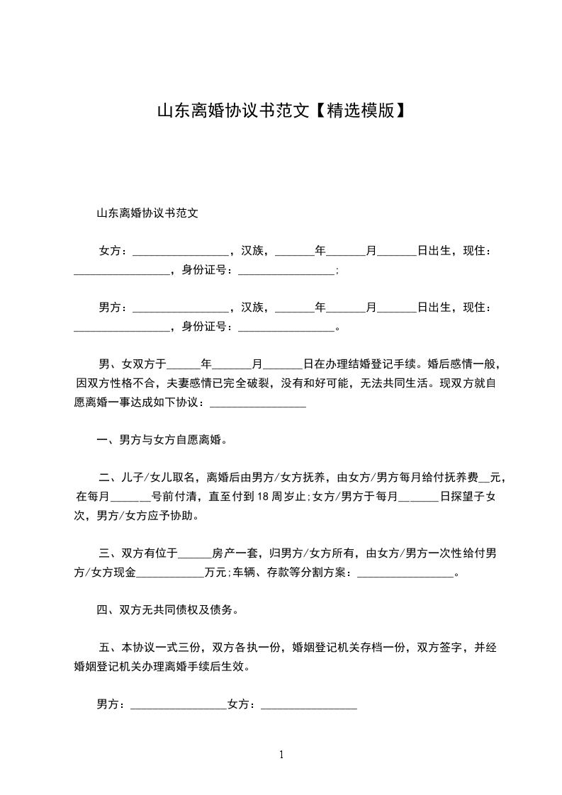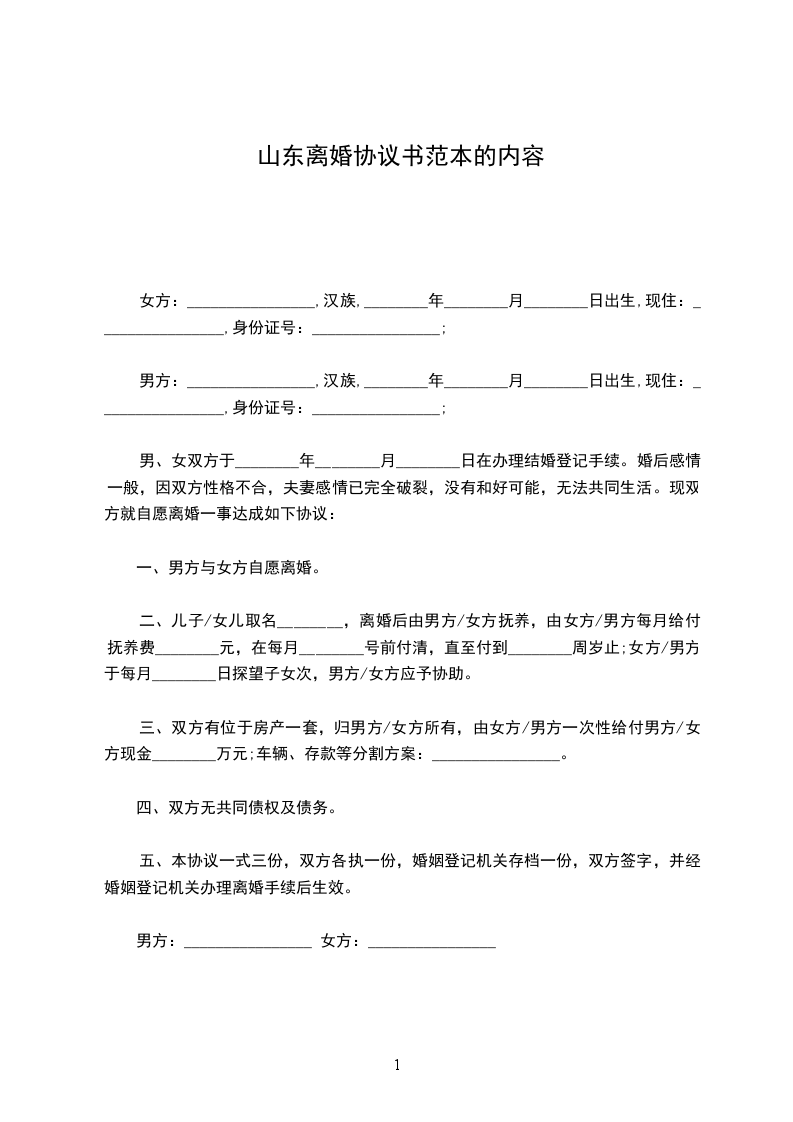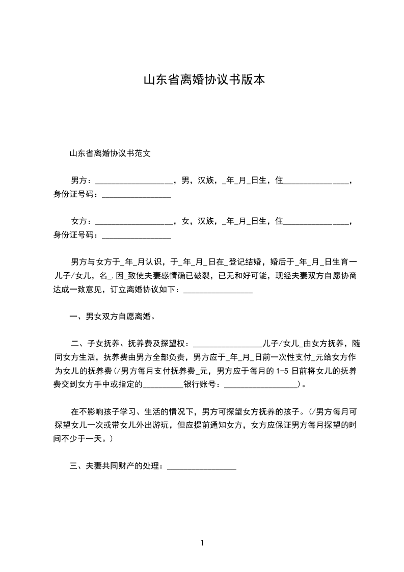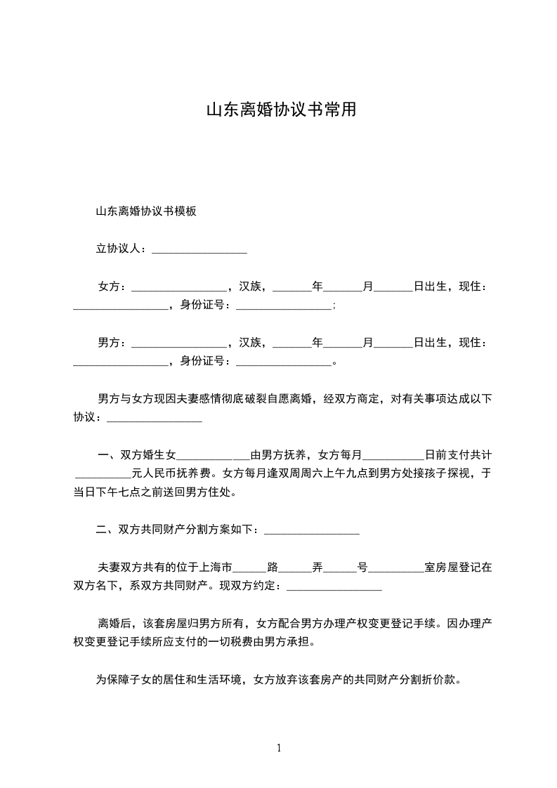 女方:_________________,汉族,_______年_______月_______日出生,现住:_________________,身份证号:_________________;