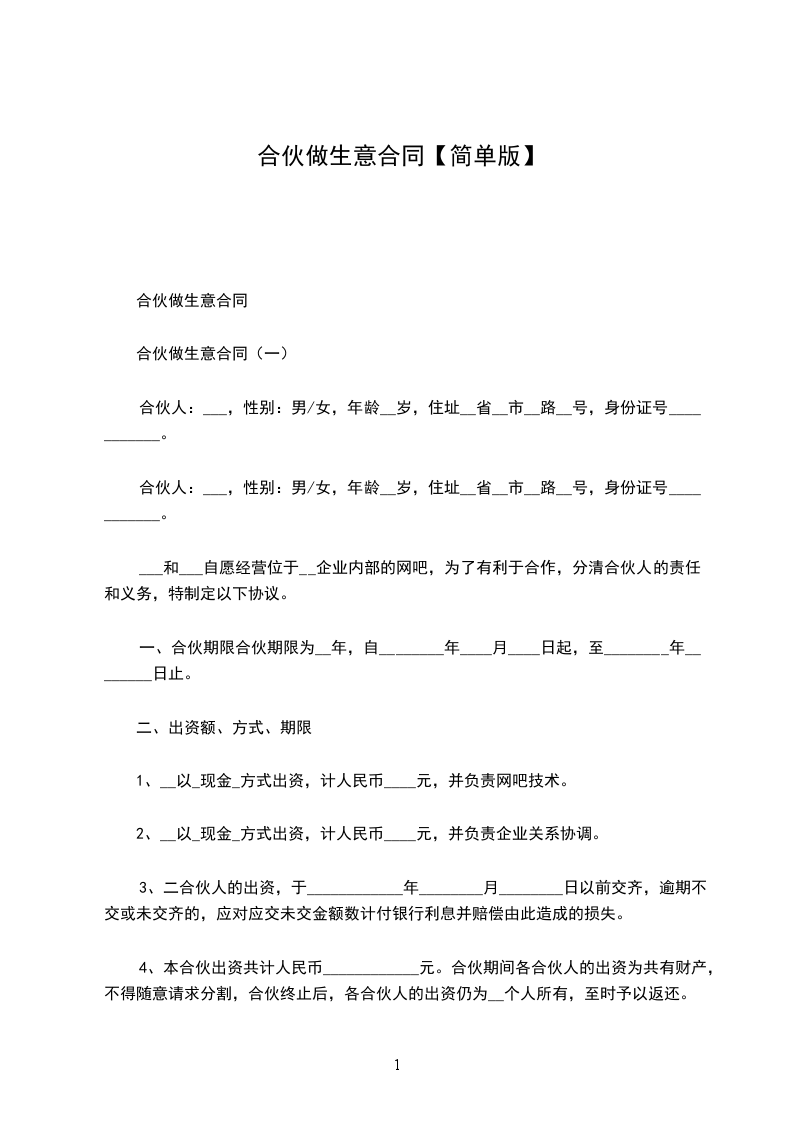 ___和___自愿经营位于__企业内部的网吧,为了有利于合作,分清合伙人的责任和义务,特制定以下协议。