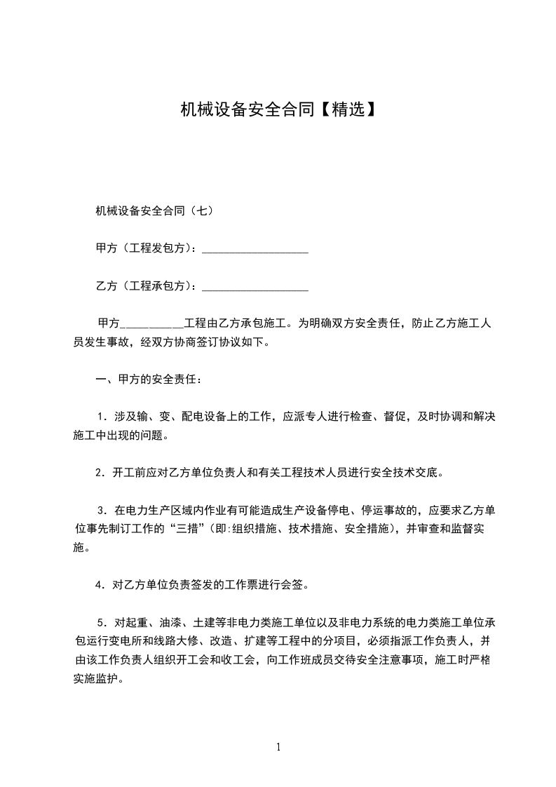 机械设备安全合同(七)