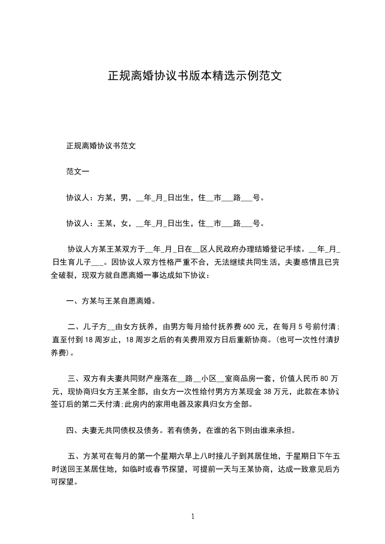 协议人方某王某双方于__年_月_日在__区人民政府办理结婚登记手续。__年_月_日生育儿子___。因协议人双方性格严重不合,无法继续共同生活,夫妻感情且已完全破裂,现双方就自愿离婚一事达成如下协议: