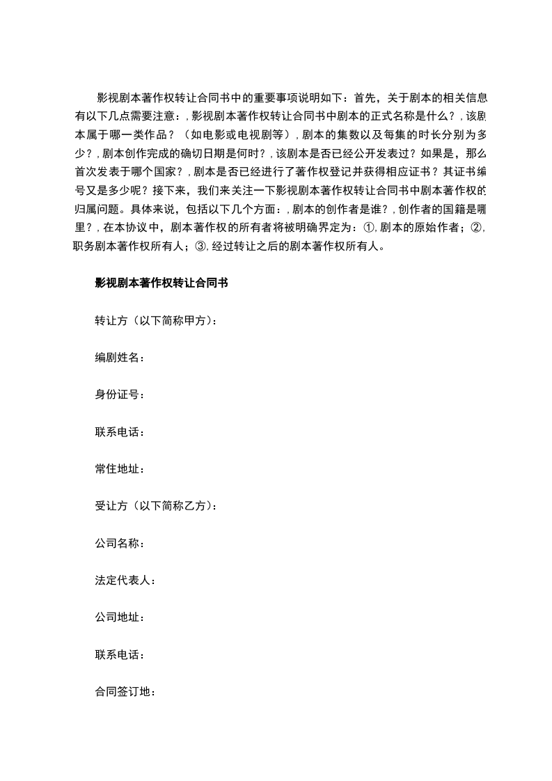 影视剧本著作权转让合同书