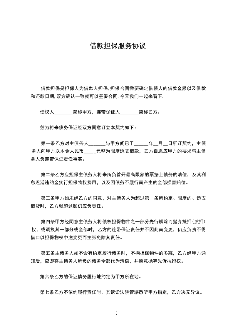 第七条:丙方受乙方委托为本合同项下的借款提供连带责任保证,在借款逾期之日起____日内丙方应将应付款项偿付给甲方。