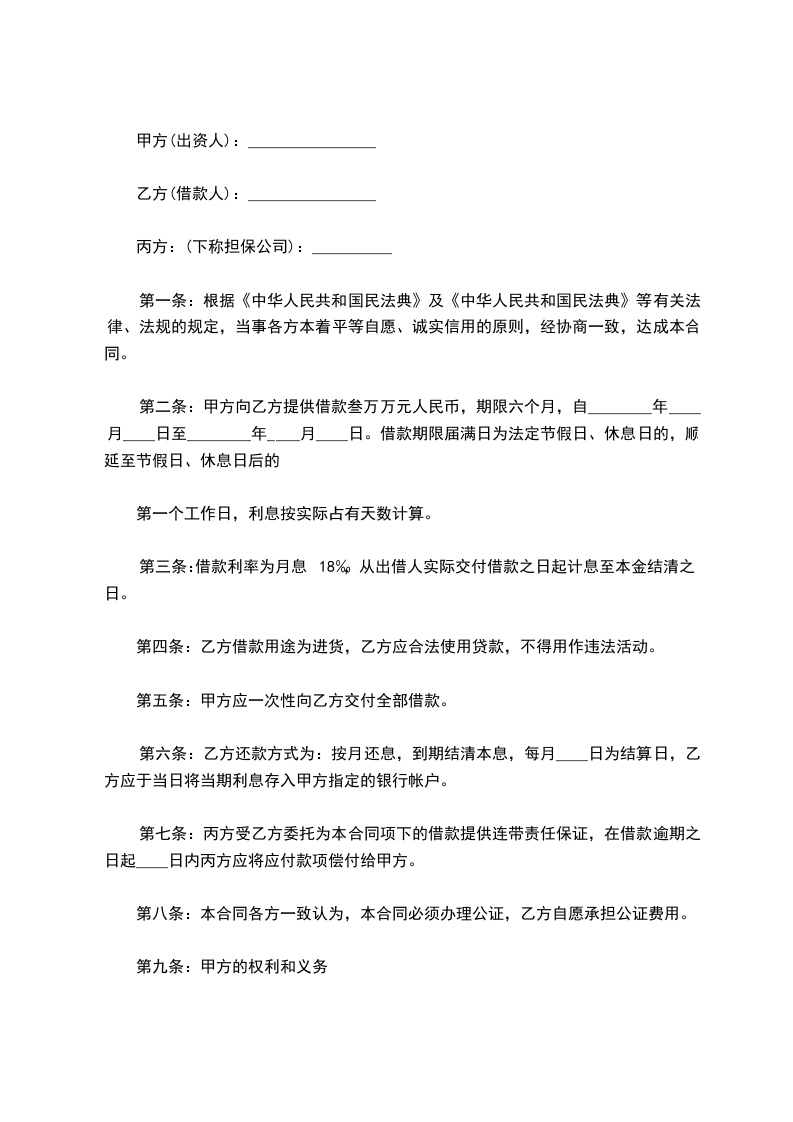 第二条:甲方向乙方提供借款叁万万元人民币,期限六个月,自________年____月____日至________年____月____日。借款期限届满日为法定节假日、休息日的,顺延至节假日、休息日后的