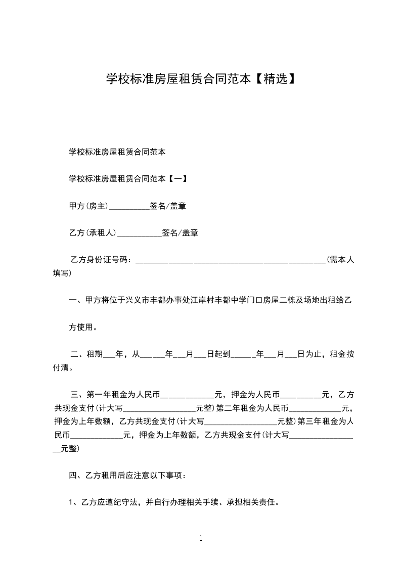 学校标准房屋租赁合同范本