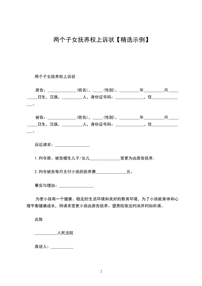 1.判令原、被告婚生儿子/女儿_______________变更为由原告抚养;