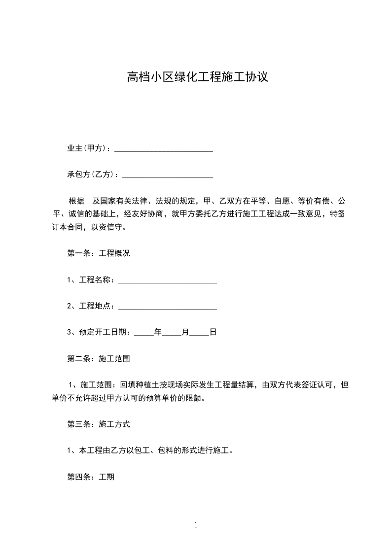 3、预定开工日期:______年 ______月 ______日
