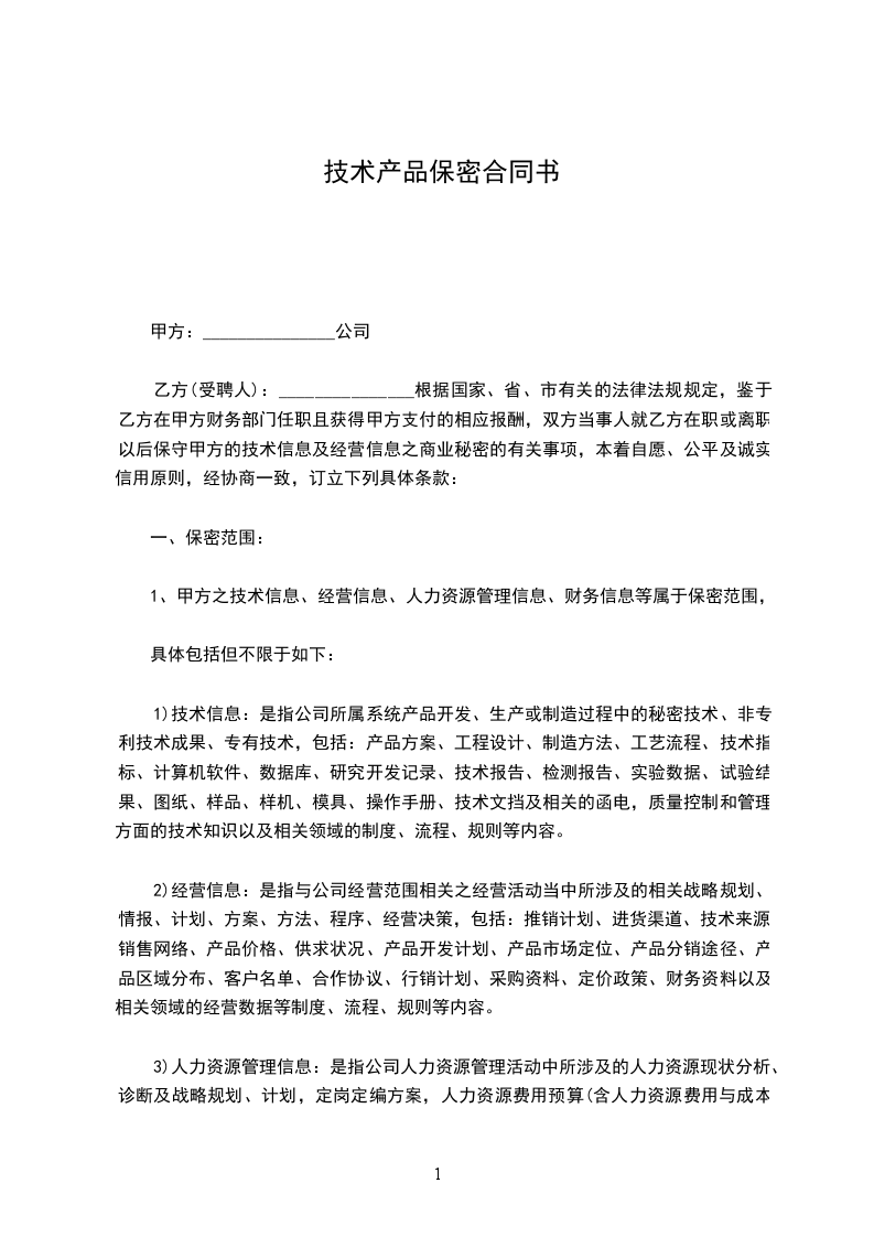 乙方(受聘人):_______________根据国家、省、市有关的法律法规规定,鉴于乙方在甲方财务部门任职且获得甲方支付的相应报酬,双方当事人就乙方在职或离职以后保守甲方的技术信息及经营信息之商业秘密的有关事项,本着自愿、公平及诚实信用原则,经协商一致,订立下列具体条款: