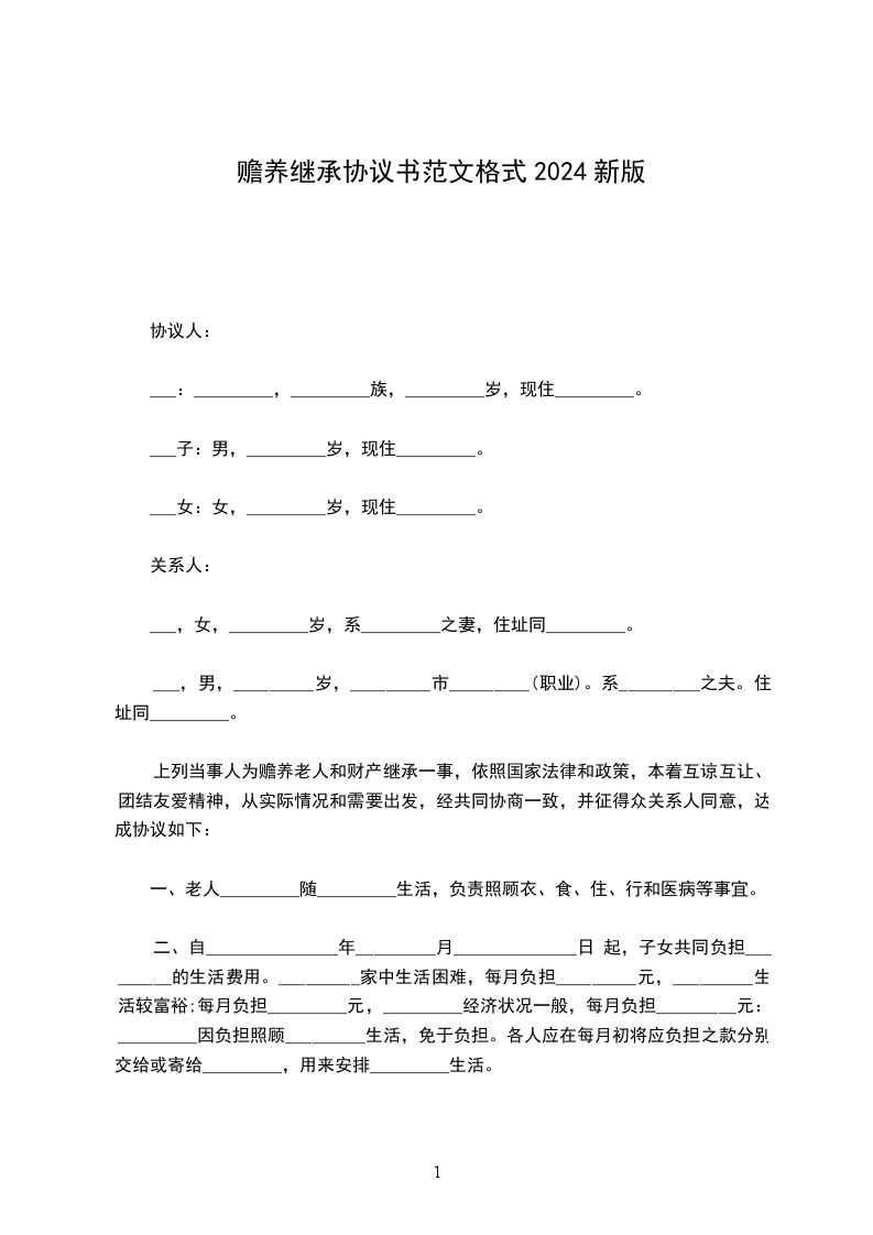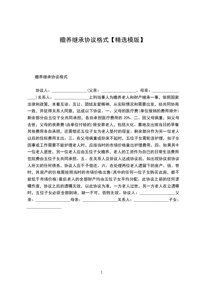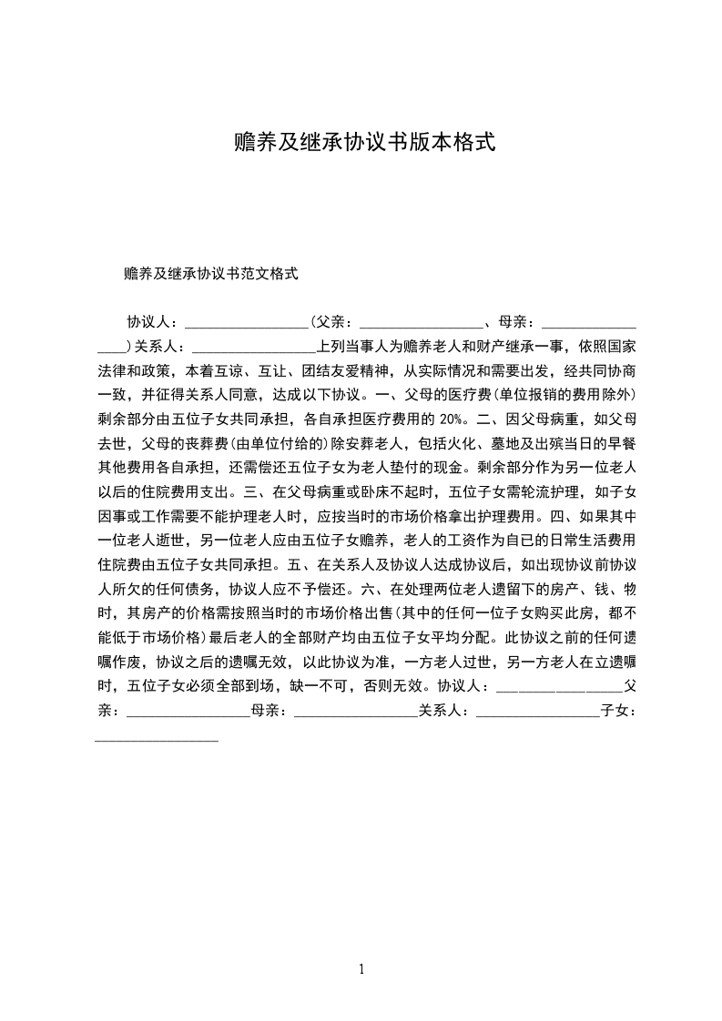赡养继承协议书格式
