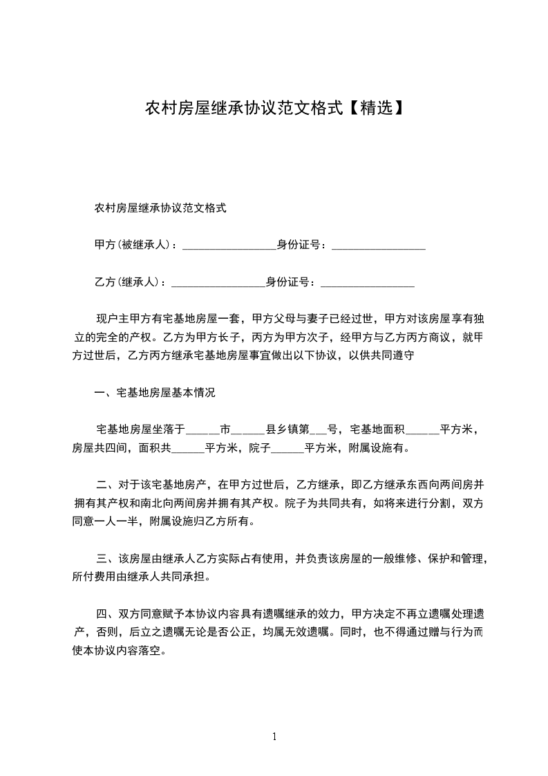 现户主甲方有宅基地房屋一套,甲方父母与妻子已经过世,甲方对该房屋享有独立的完全的产权。乙方为甲方长子,丙方为甲方次子,经甲方与乙方丙方商议,就甲方过世后,乙方丙方继承宅基地房屋事宜做出以下协议,以供共同遵守