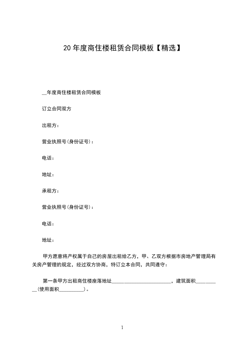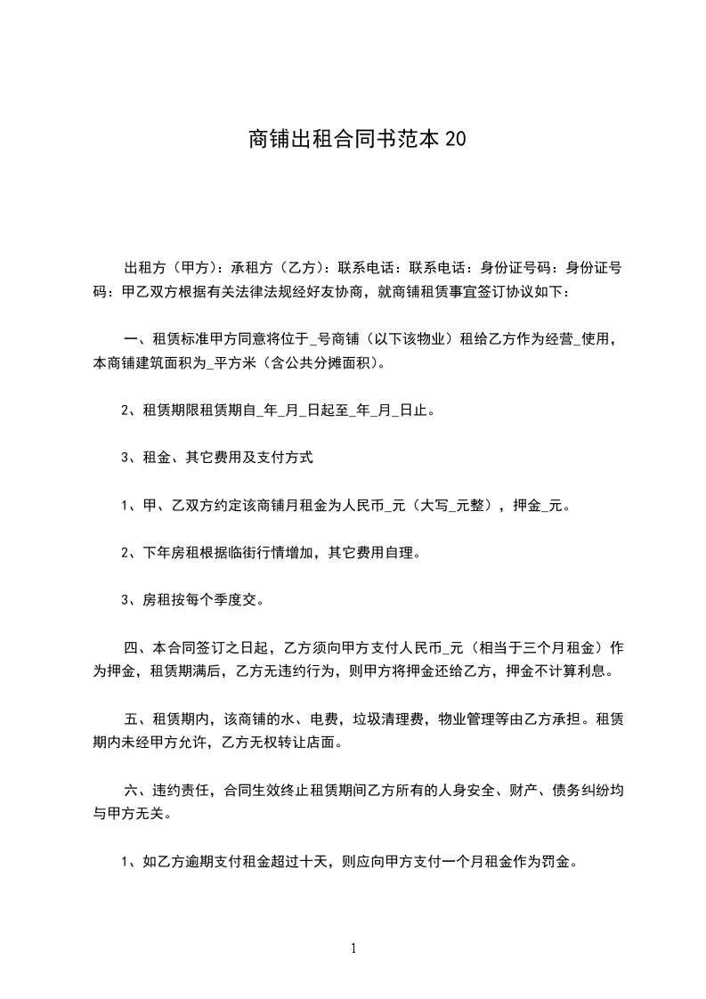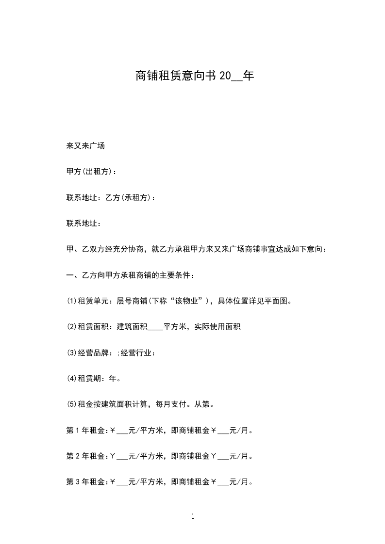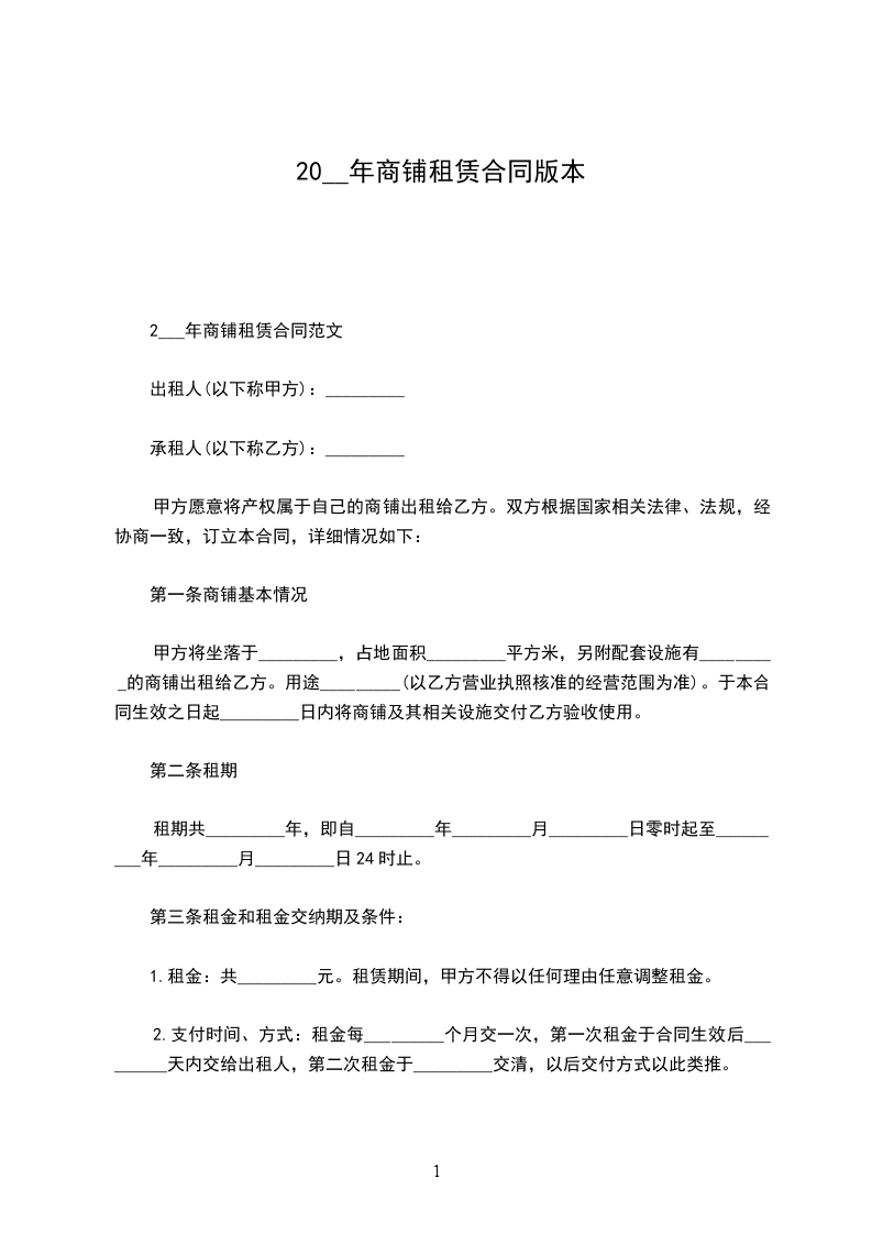 2___年商铺租赁合同范文