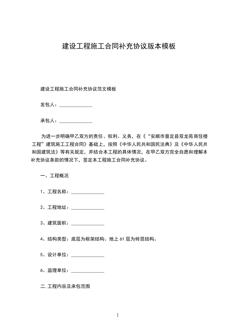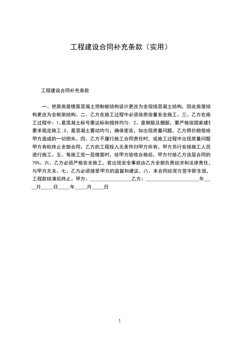 3、乙方承包范围内的设计变更而引起的增减工程由甲乙双方共同协商。施工合同补充协议
