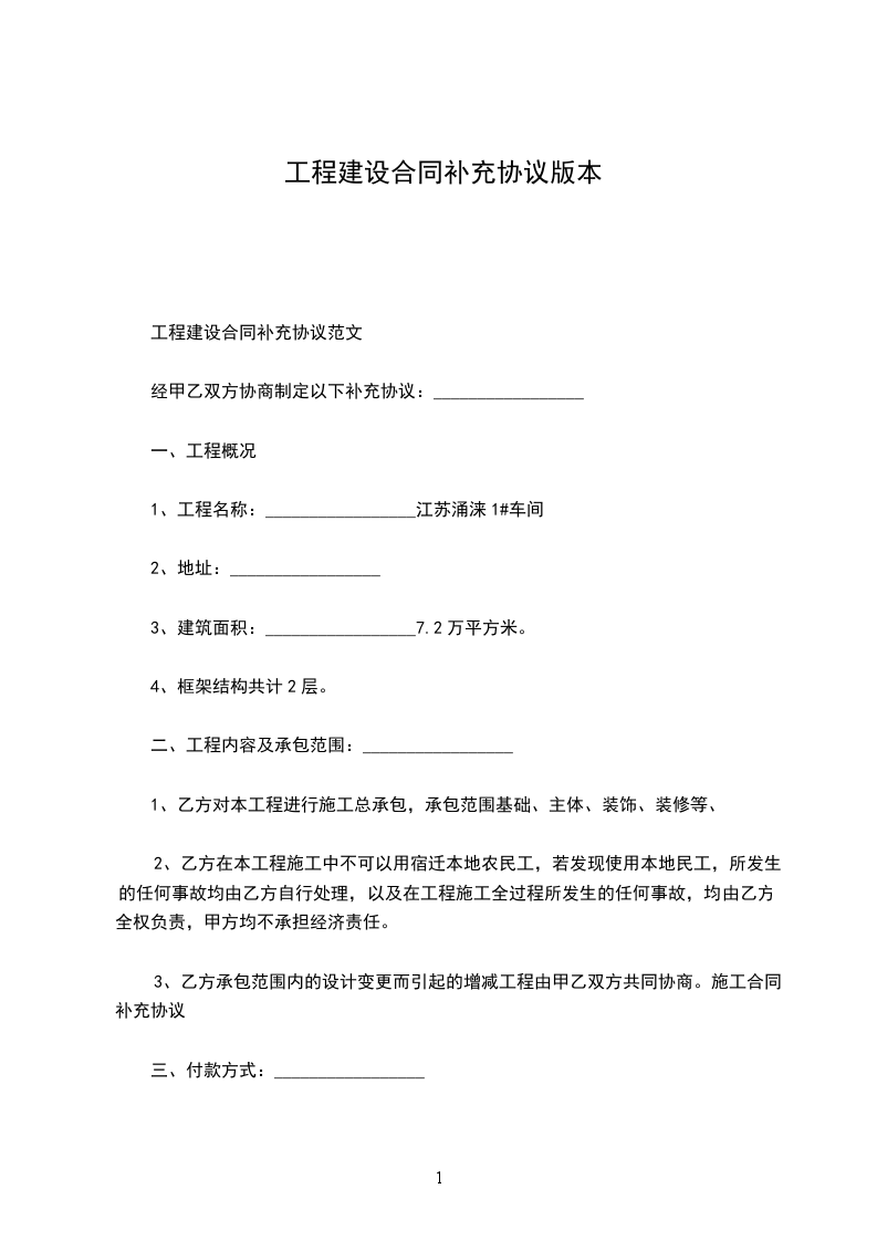 1、工程名称:_________________江苏涌涞1#车间