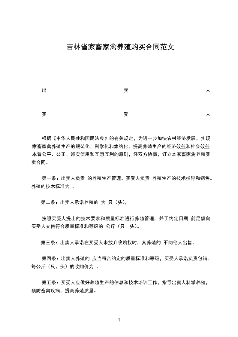根据《中华人民共和国民法典》的有关规定,为进一步加快农村经济发展,实现家畜家禽养殖生产的规范化、科学化和集约化,提高养殖生产的经济效益和社会效益,本着公平、公正、诚实信用和互惠互利的原则,经双方协商,订立本家畜家禽养殖买卖合同。