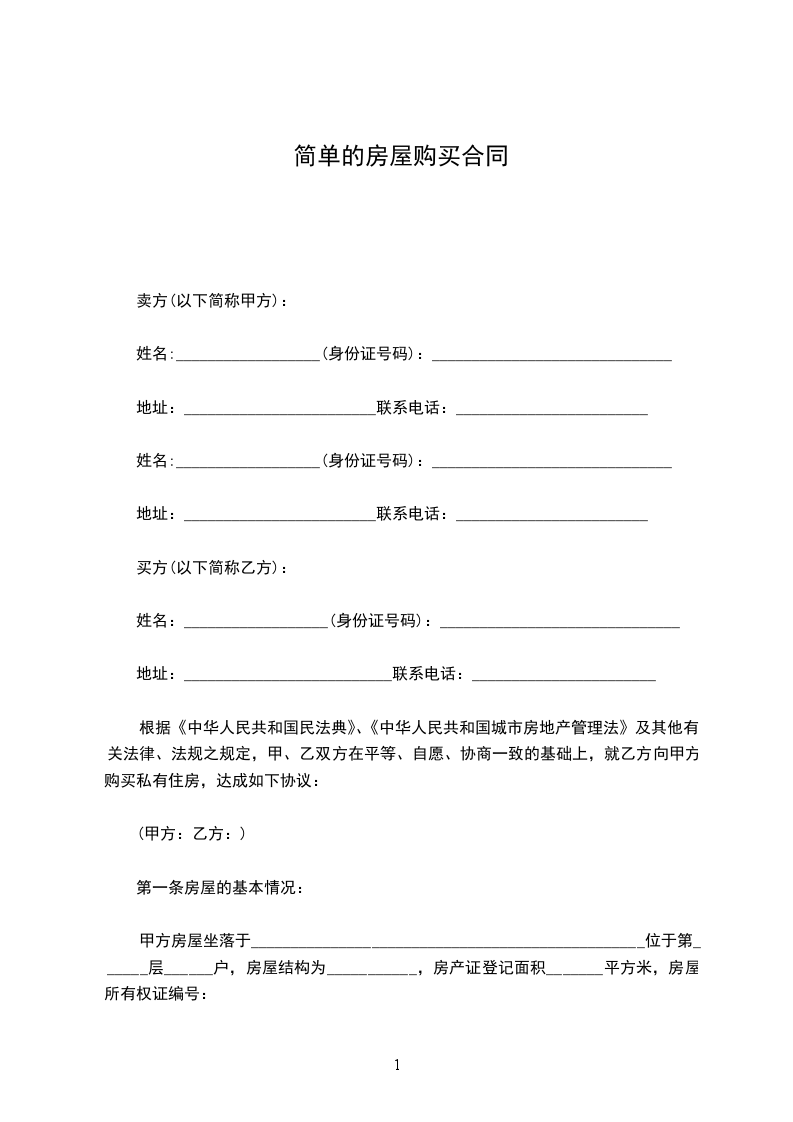 根据《民法典》、《中华人民共和国城市房地产管理法》及其有关法律、法规规定,甲乙双方经友好协商,甲方同意将自有房屋一处出售给乙方,乙方已对甲方所要出售的房屋做了充分的了解,愿意购买该房,特制订本合同如下: