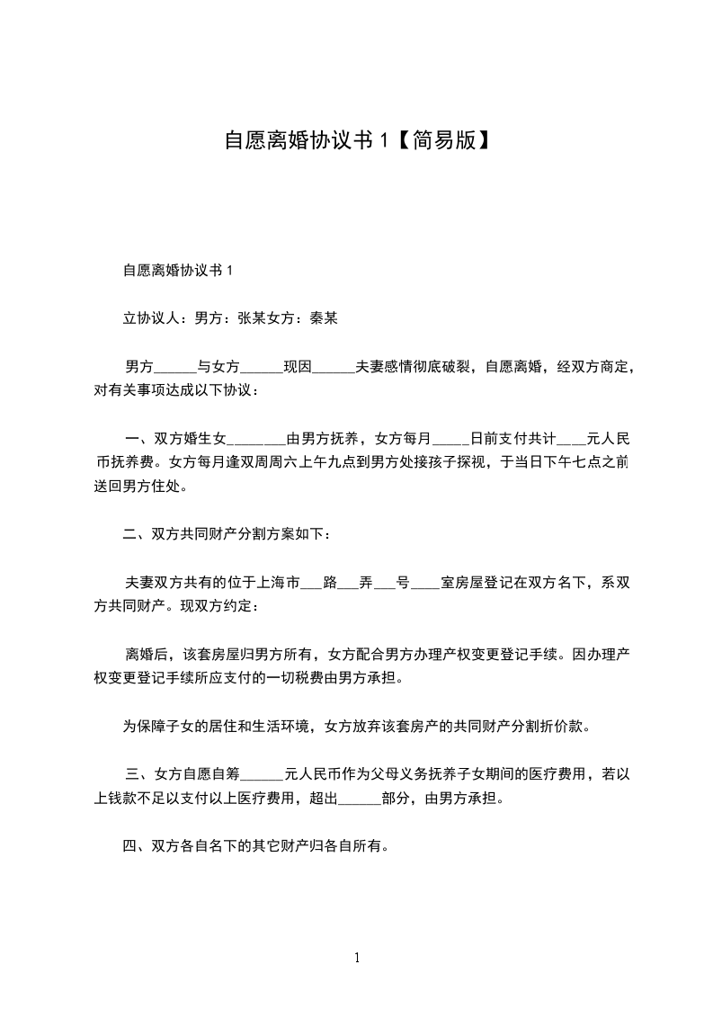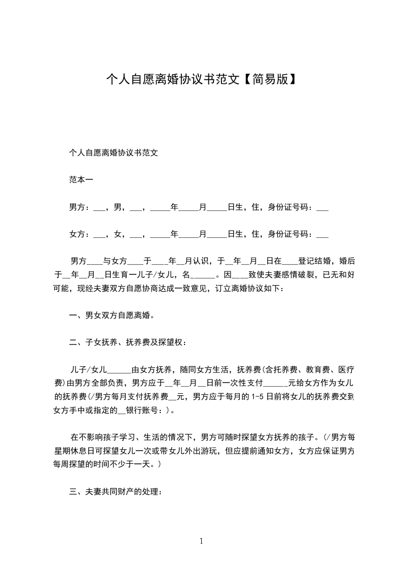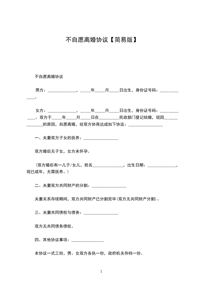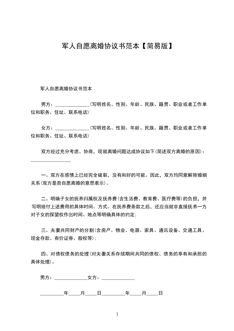 军人自愿离婚协议书范本