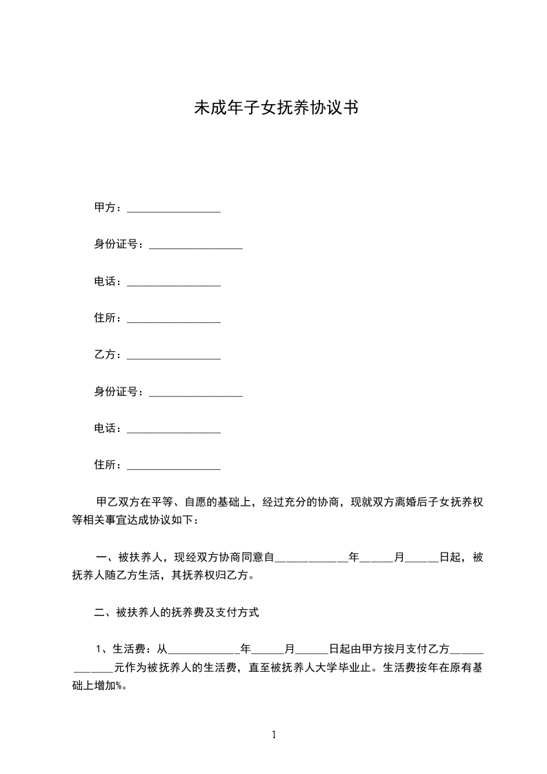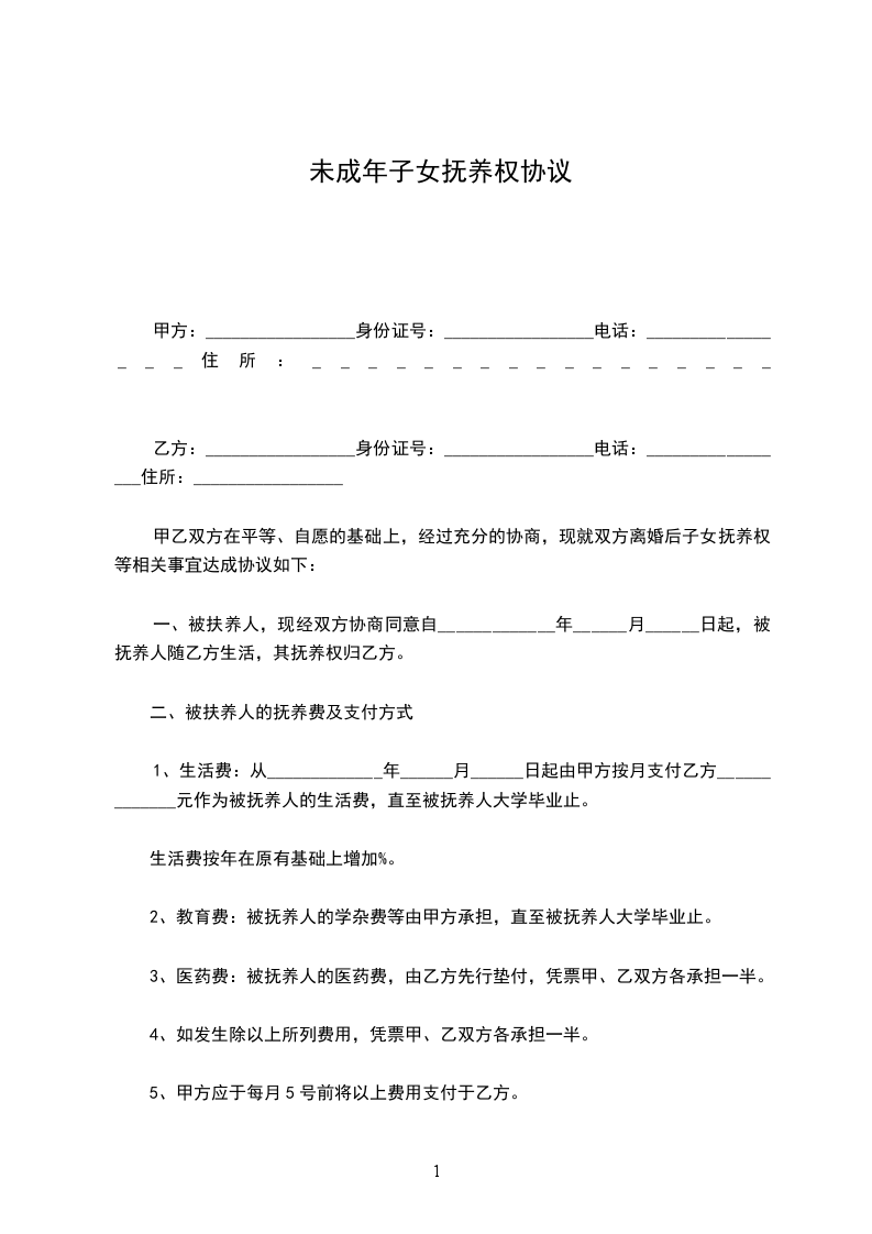 一、女儿/儿子_________现年_________岁,归_________方抚养。