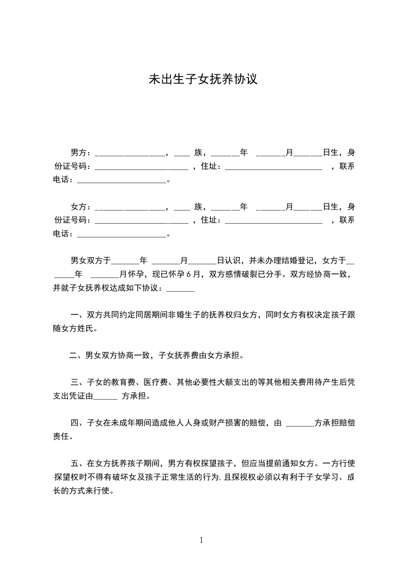 四、_________年以前的教育费、医药费、生活费,均已由_________方负责,再不计算。