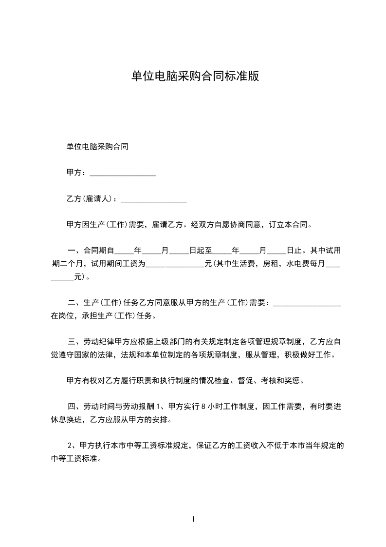 一、合同期自_____年_____月_____日起至_____年_____月_____日止。其中试用期二个月,试用期间工资为_______________元(其中生活费,房租,水电费每月__________元)。