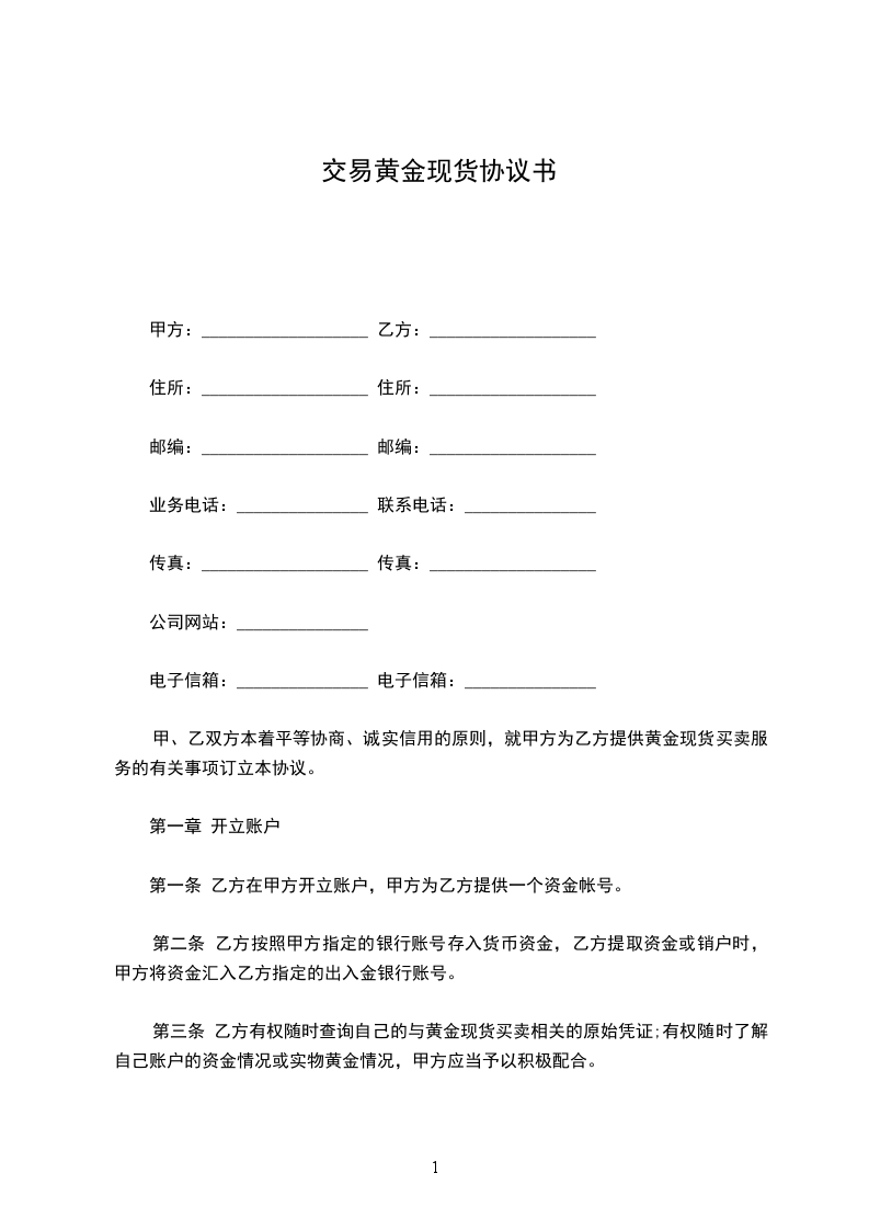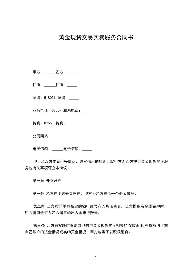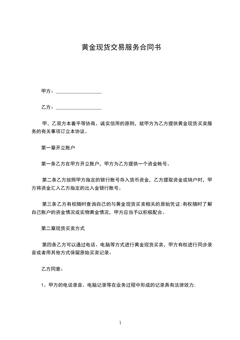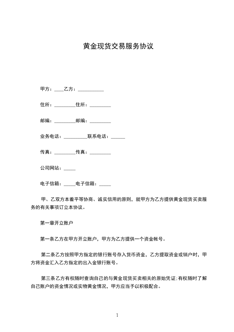 甲、乙双方本着平等协商、诚实信用的原则,就甲方为乙方提供黄金现货买卖服务的有关事项订立本协议。
