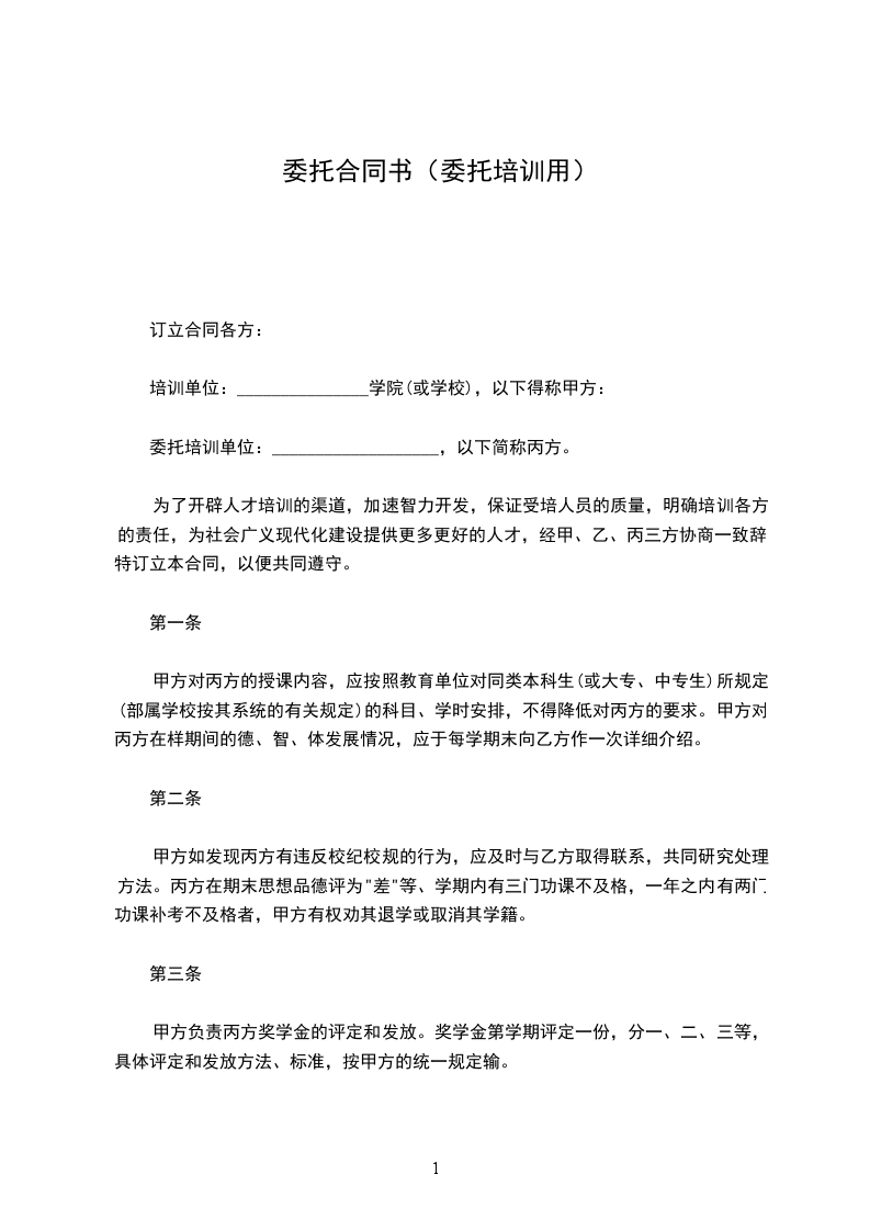 ___________(下称甲方)和___________培训学校(下称乙方)经友好协商,就企业委培课程事宜,达成如下协议: