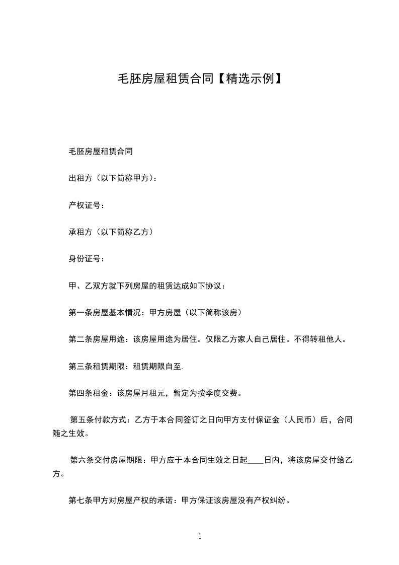 毛胚房屋租赁合同
