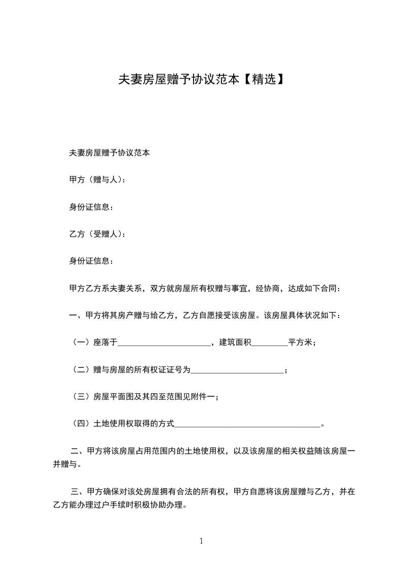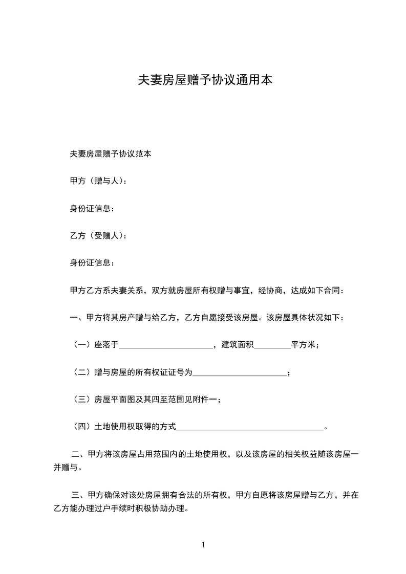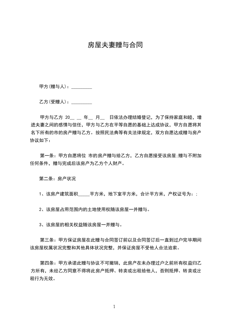 甲方乙方系夫妻关系,双方就房屋所有权赠与事宜,经协商,达成如下合同:
