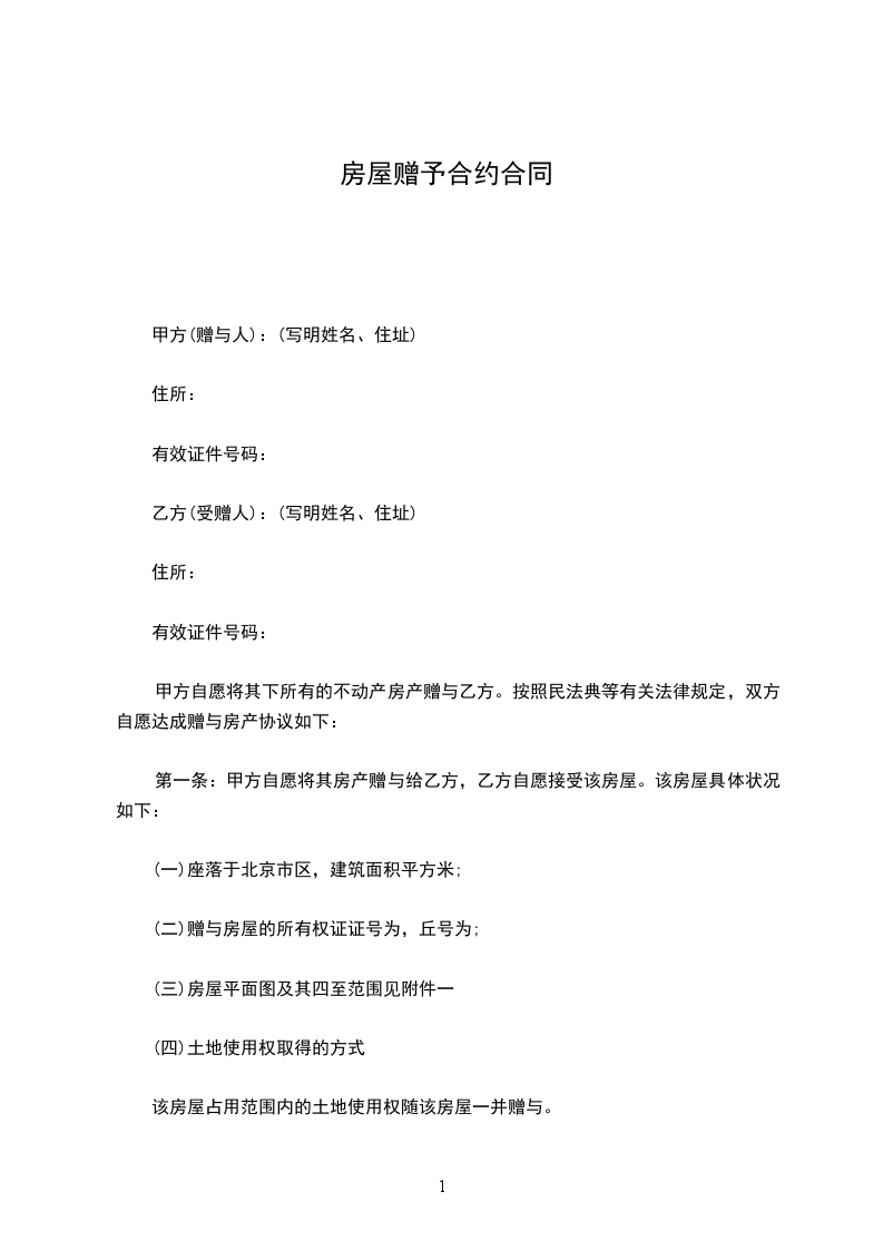 一、甲方将其房产赠与给乙方,乙方自愿接受该房屋。该房屋具体状况如下:
