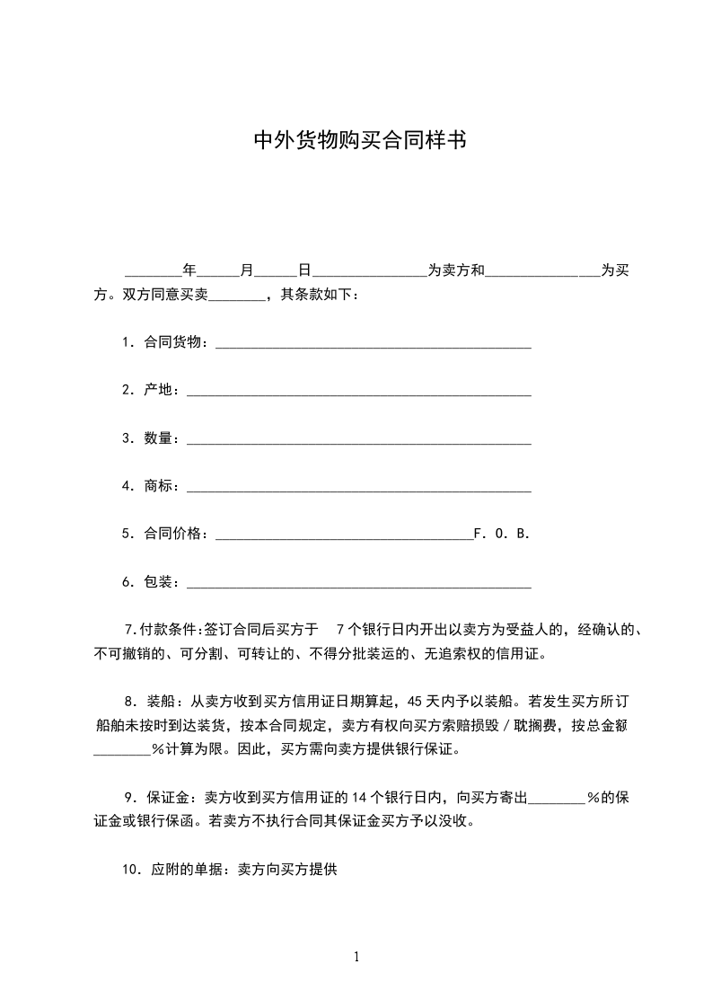 9.保证金:卖方收到买方信用证的14个银行日内,向买方寄出________%的保证金或银行保函。若卖方不执行合同其保证金买方予以没收。
